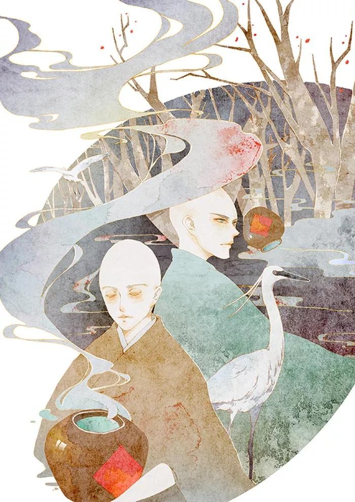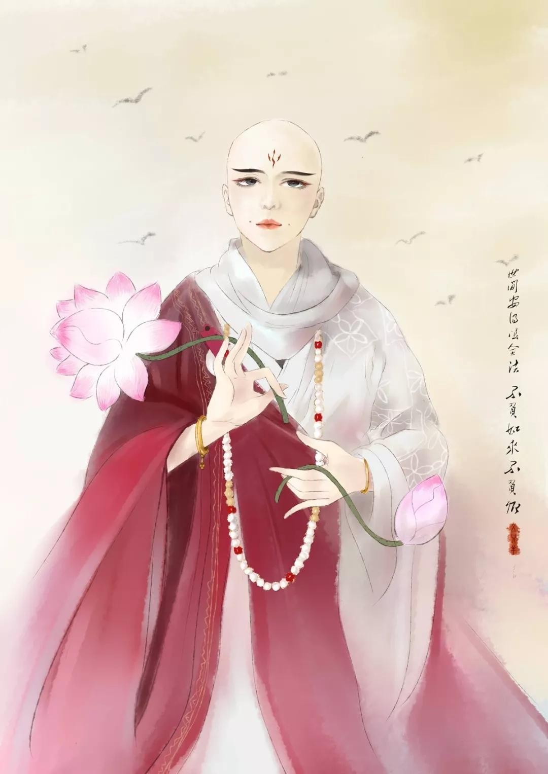 古风壁纸+头像插画「和尚」一缕情丝,几点离愁,又有多少俗事缠
