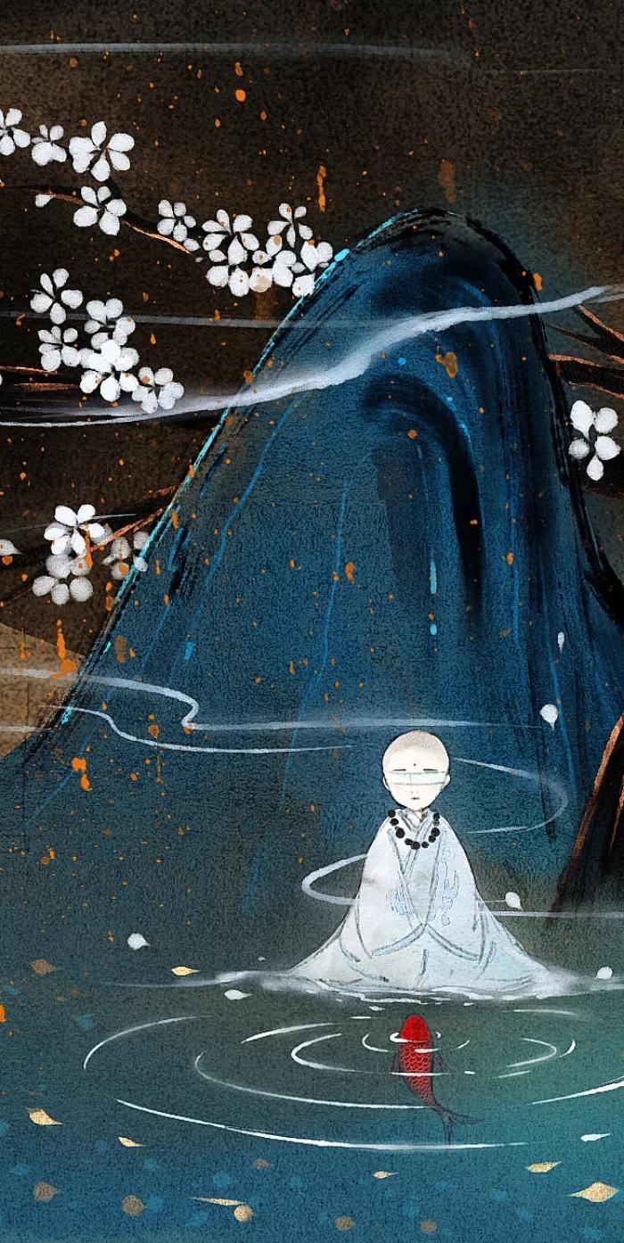 古风壁纸、头像插画「和尚」一缕情丝,几点离愁,又有多少俗事缠
