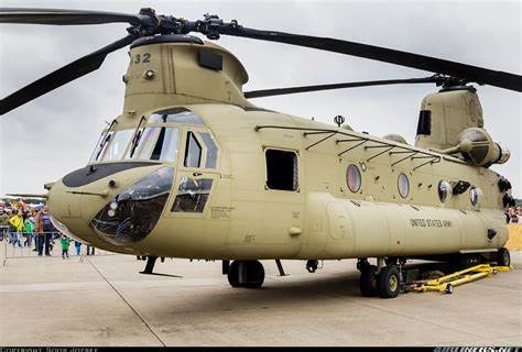 CH-47 Chinook是美国波音公司开发的一款重型运输直升机,已经在全球许多军队和民用公司中得到应用。该机器能够运输重型装备、武器、物资和人员,并在任何条件下执行复杂的任务。其特殊的双旋翼设计使其具有出色的搭载能力和操纵性能。