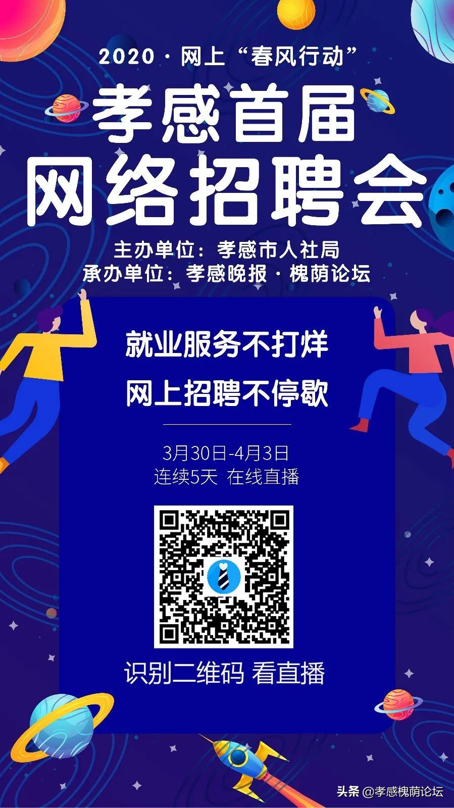 为确保疫情期间就业服务不打烊、网上招聘不停歇促进求职者和企业有效对接进一步稳定和扩大就业孝感市人社局联合孝感晚报·槐荫论坛特举办孝感市首届网络“春风行动”招聘会系列直播活动!快来get2020年找工作的正确打开方式吧!