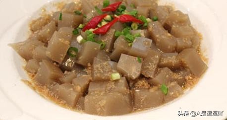 以牛蹄筋和大葱加工烧制的佳肴。此菜用料讲究,色白透明:油清底亮,口香筋软,富含营养,常用于迎宾宴席。