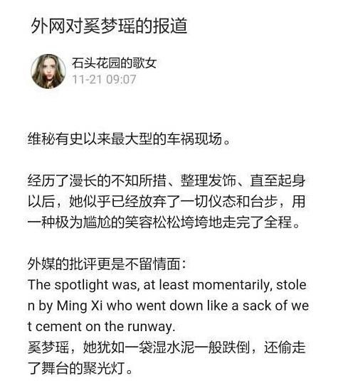 奚梦瑶在维密舞台上摔倒成了本届维密最大的看点,这一摔引起了众多的争议。