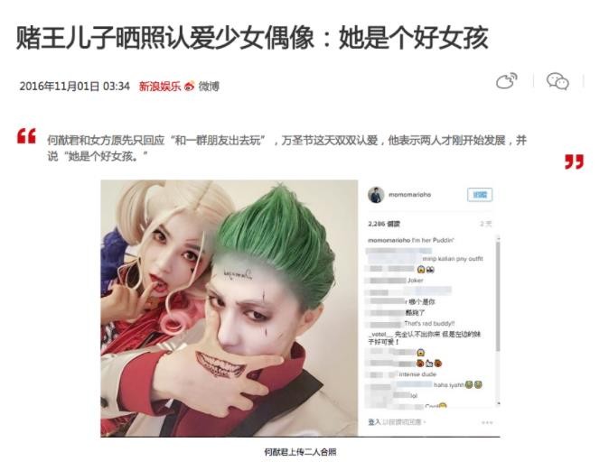 2016年,何猷君又在网上官宣自己恋爱的消息。