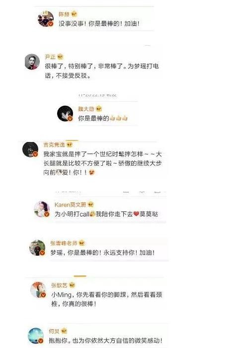 虽然不知道为啥叫她小明不叫小瑶,但是可以看出,娱乐圈的众多明星都前来力挺奚梦瑶了。
