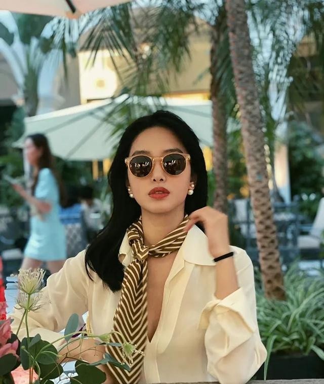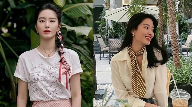 她的丝巾搭配也是比较有名的了,用一条丝巾给偏简单的穿搭加分,凸显气质的同时也能增加时髦度,基础款穿出高贵范儿的模板~