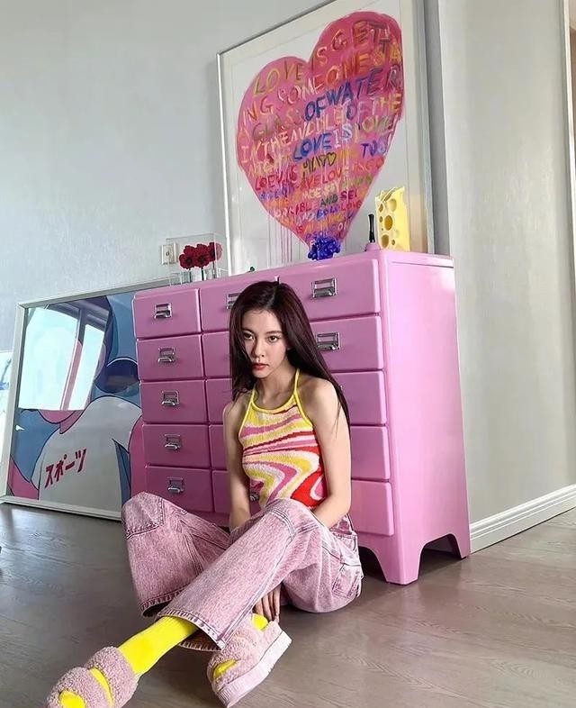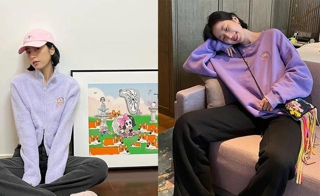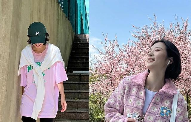 尽管走的是酷飒范儿,但是这并不妨碍她对粉色的喜爱。粉T恤、粉卫衣、粉衬衫、粉外套,三分甜的粉系少女周随时上线。作为时髦穿搭玩家,同色系穿搭、撞色呼应这些技巧她也经常会运用。