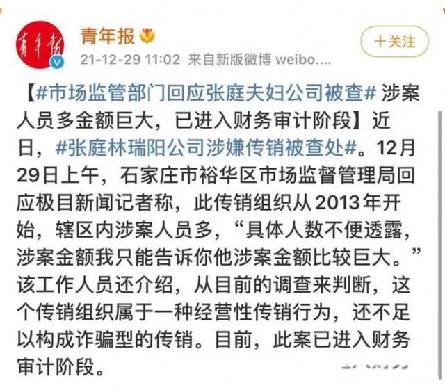 张庭夫妇就是一对披着演员外衣的传销组织!没有人能够无缘无故的成功!连骗子也不例外!挺佩服他们夫妻俩的,每次刷视频看到的场景,都像是打了鸡血的状态,亢奋,热情,搞笑,不知疲倦!不愧是专业演员出身,手到擒来轻车熟路的专长,怎么也比努力的业余者技高一筹,试问能有多少人能抵抗得了微商利益的诱惑呢?问题是: 总是把别人的表演当成真实的人,早晚会遇到麻烦,他们搞传销都放得那么开。他们叫要成功,先发疯!会做很多解放天性的游戏让你可以完全不顾脸面。其实这招很有用,也很有必要。每个销售型公司都在用,只不过传销公司用到了极致。