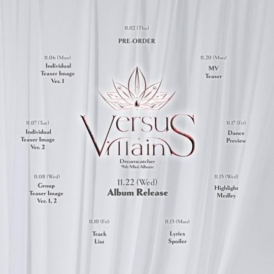 DREAMCATCHER的经纪公司昨晚在官方SNS公布DREAMCATCHER的回归日程海报,正式宣布DREAMCATCHER将于本月22日推出第九张迷你专辑《VillainS》。