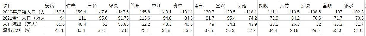 根据七普数据,2016年户籍超百万人口大县,2021年其常住人口数据分别为,安岳94.0万人、仁寿111万人、三台95.58万人、中江94.8万人、渠县91.75万人、宣汉95.41万人、资中84.56万人、南部81.72万人、岳池县74.2万人、大竹84.2万人、仪陇72.91万人、富顺71.7万人、泸县76.6万人、邻水70.6万人、简阳市113.69万人。