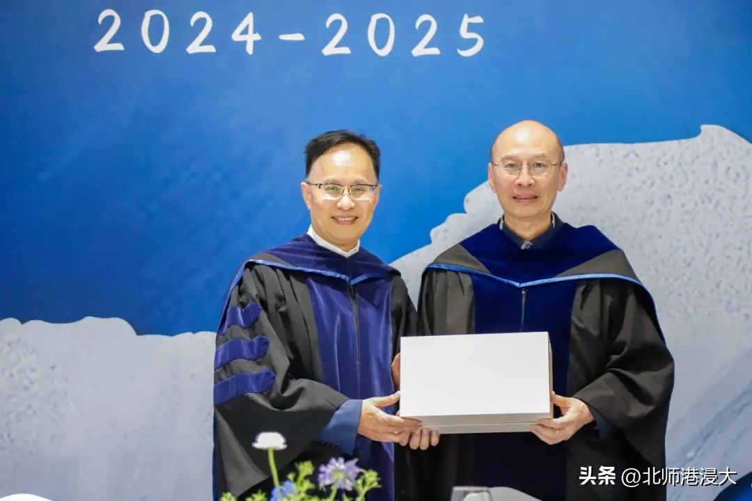 北师港浸大协理副校长(教与学)、研究生院院长黄煜教授(右)向钟布教授致送纪念品