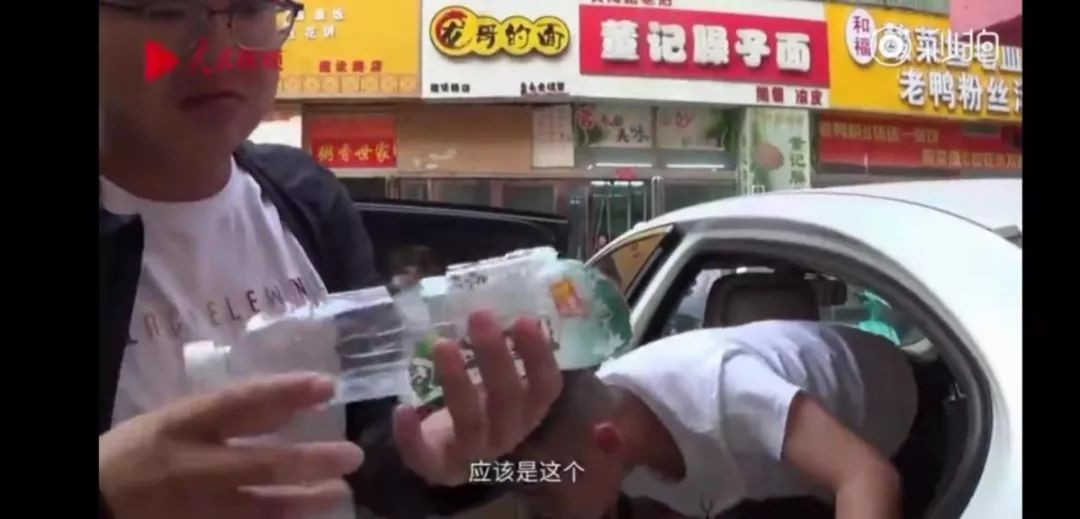 从车里取出了一个饮料瓶: