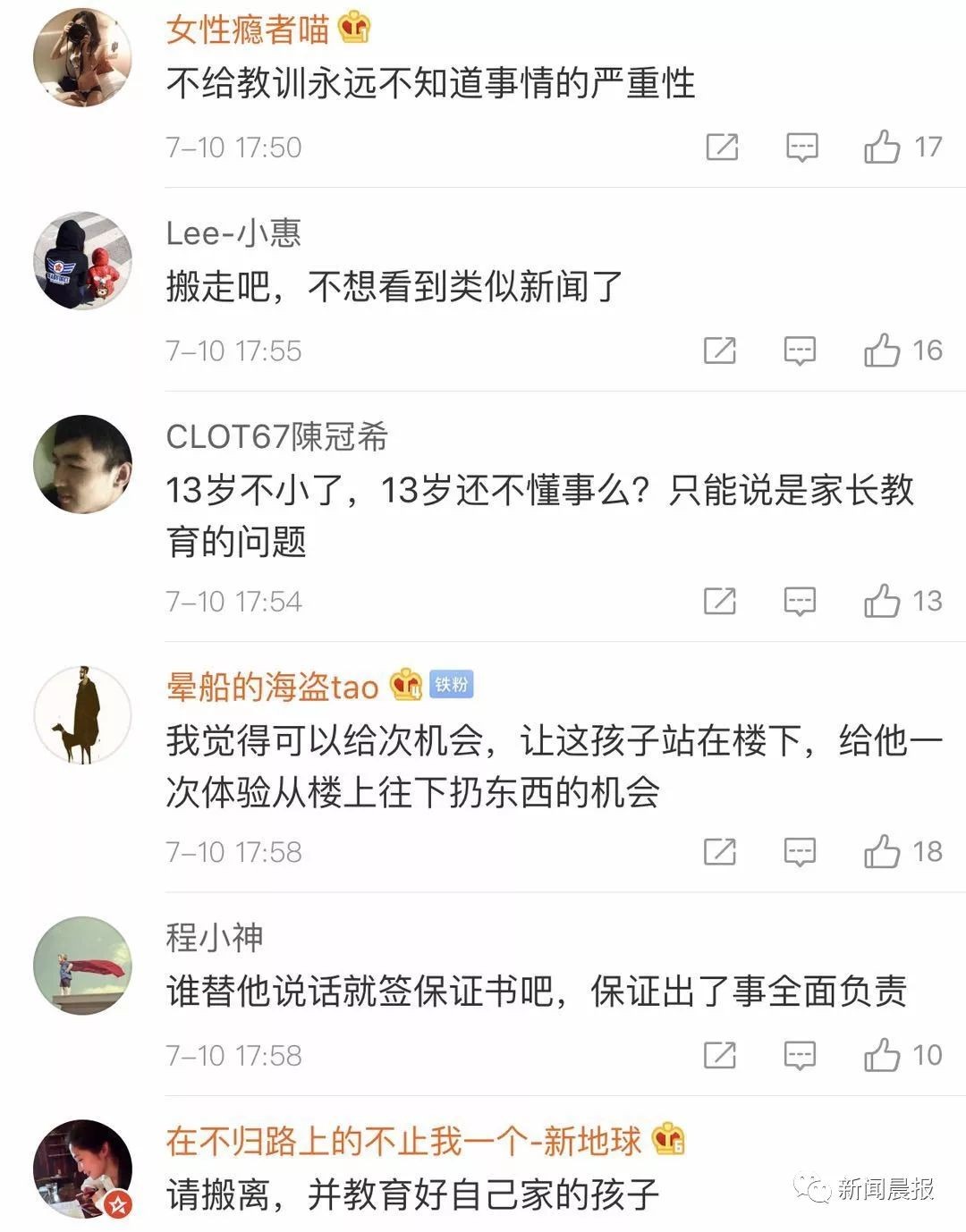 是他们家13岁的孩子扔下去的。