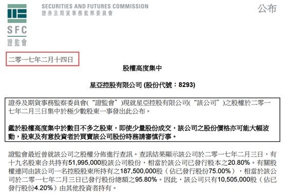 有分析将股价断崖式暴跌指向了星亚控股股权高度集中。
