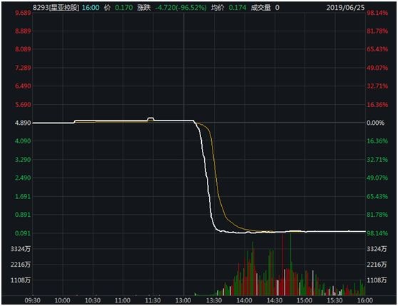 今日午后,港股星亚控股突然遭遇断崖式暴跌。由于港股没有涨跌幅限制,先从数据来看看这夸张下跌速度: