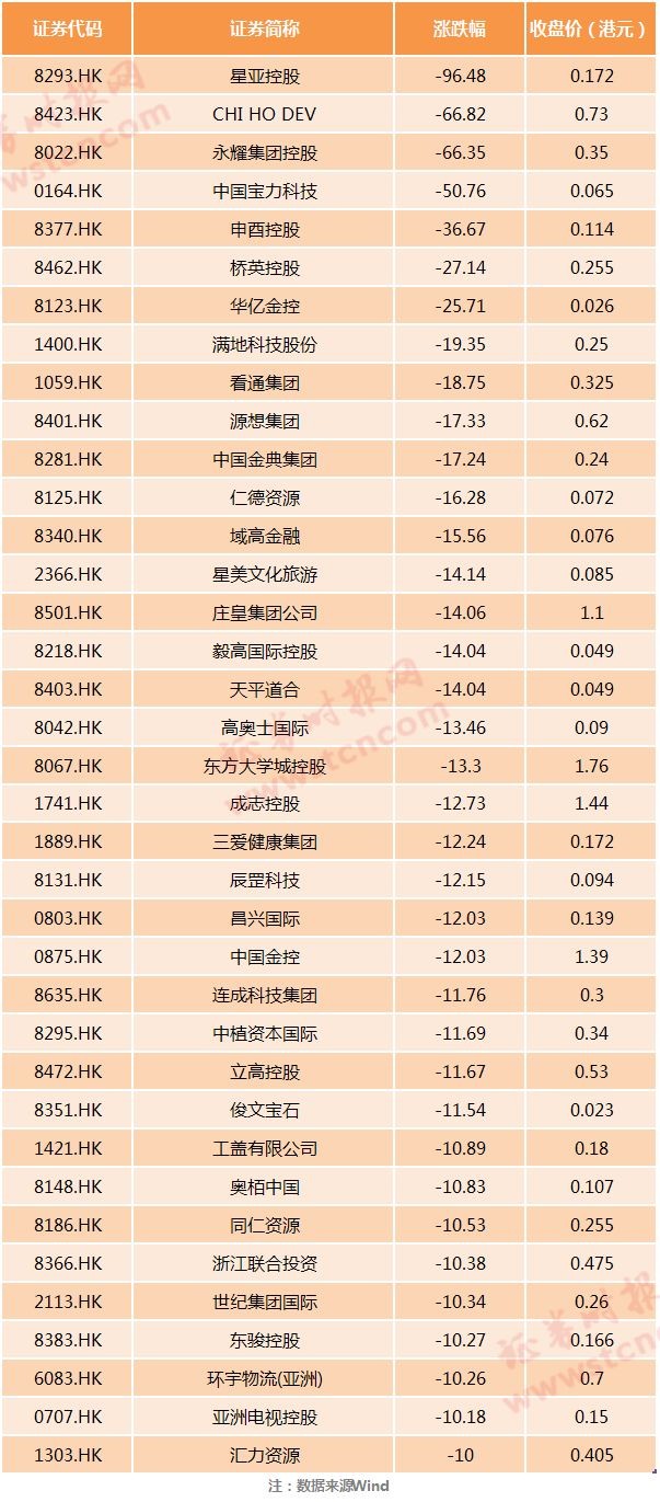 港股惊心一幕!星亚控股单日暴跌96%,还有这些个股跌幅也超60%(名单)