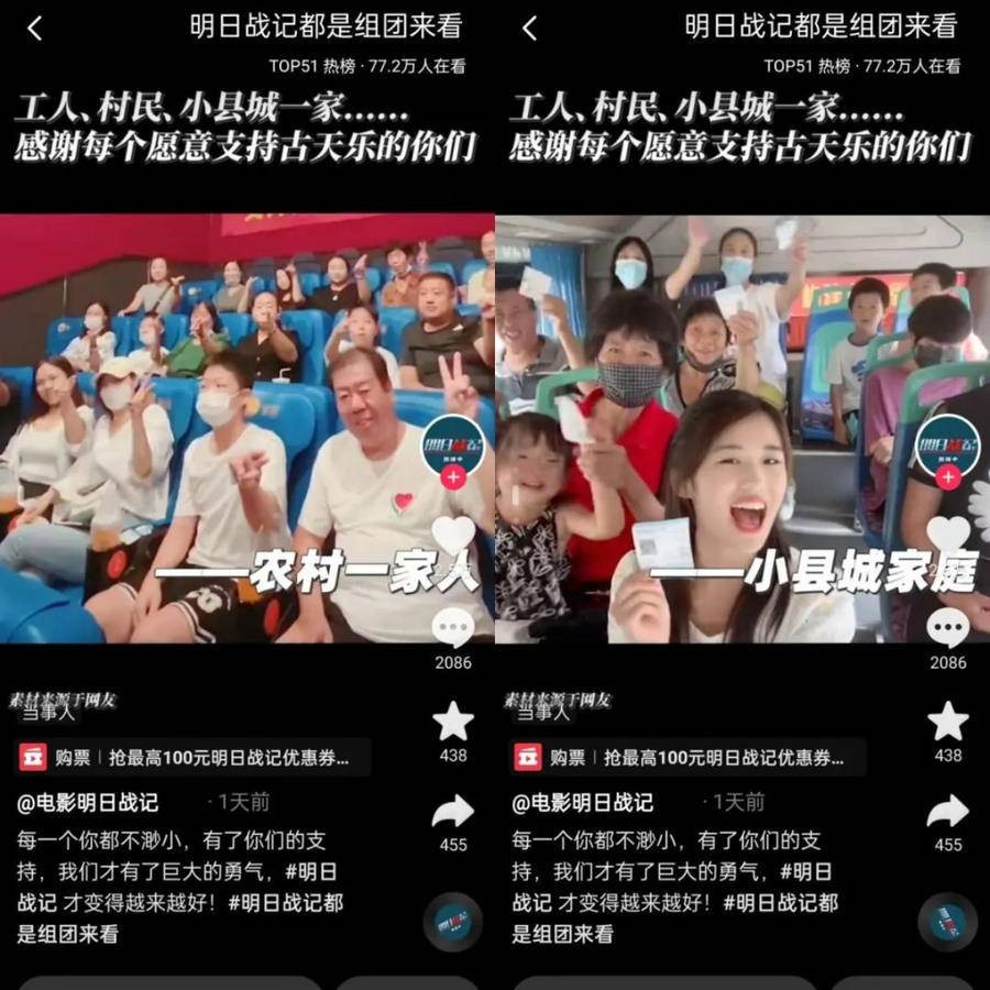 “卖惨”营销、过度营销、碰瓷式营销打法、“偷票房”骂战等铺天盖地的电影宣传,在短视频平台上几乎成为一场情绪狂欢。虽然这让一些观众产生抵触心理和质疑声,却为《明日战记》带来持续的热度。这让《明日战记》上映的第三个周日票房,超过第二个周日,呈现逆跌趋势。