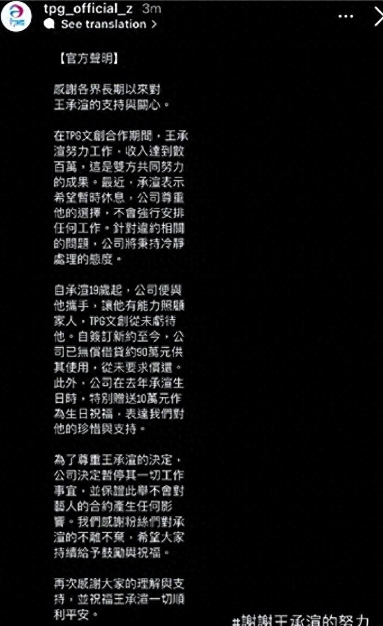 对于王承渲的这些发言,TPG文创公司在声明中表示会冷静处理,并尊重她的选择。这种态度虽然在一定程度上缓解了大家的担忧,但也引发了更多的猜测。网友们纷纷猜想,王承渲是不是遇到了公司强制签约的问题,或者在工作中遇到了什么难以解决的问题。