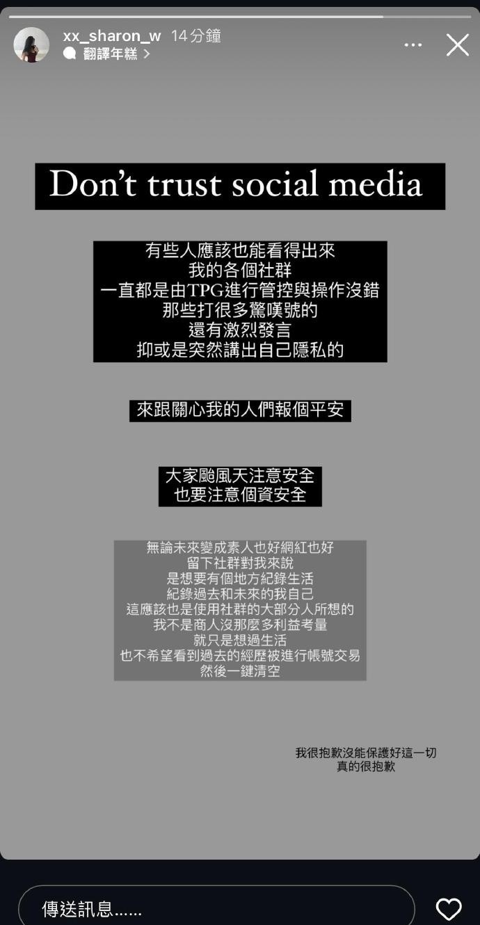 王承渲的遭遇似乎就是这样一种情况的典型例子。在她的社交媒体上,我们可以看到她对工作的疲惫和无奈。她多次表示自己只是想要离开这个行业,追求自己想要的生活。,由于合同和经纪公司的限制,她没办法轻易地做出这样的决定。