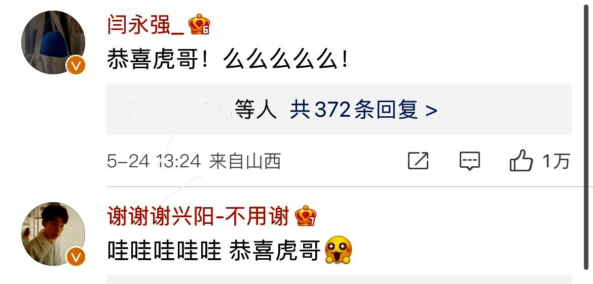 闫永强、谢兴阳也纷纷恭喜陆虎。
