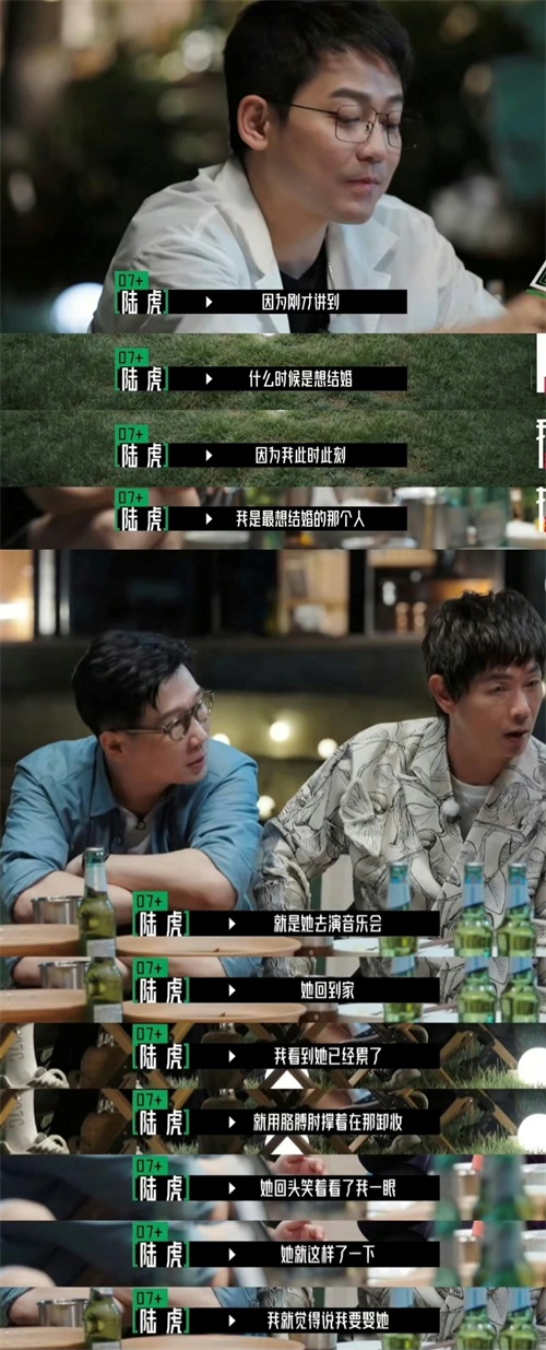 陆虎也一直坚定地相信他最想娶的人就是陈曌旭。陆虎说,有一次陈曌旭参加完音乐会,回家时已经很累了,用胳膊撑着卸妆,而这时她却回头对着陆虎笑了,就是这样一眼,让陆虎难以忘怀,很想娶陈曌旭回家。