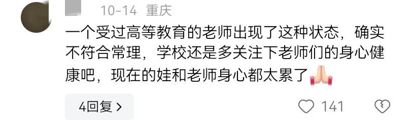 所以说,不光学校要重视老师,教育局也要重视,包括全社会都要重视老师的无奈和压力。