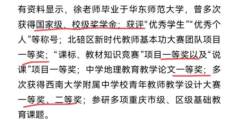 记者虽然没有采访到徐老师,但通过资料看到了徐老师的另外一面,这位徐老师的工作水平有目共睹,还不是一般的优秀。