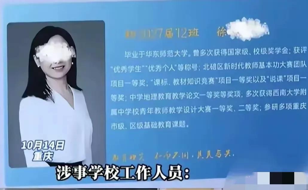 据知情人说,在老师和学生们眼里,徐老师认真负责,能力出众,不光老师,同学对她的评价也很好。