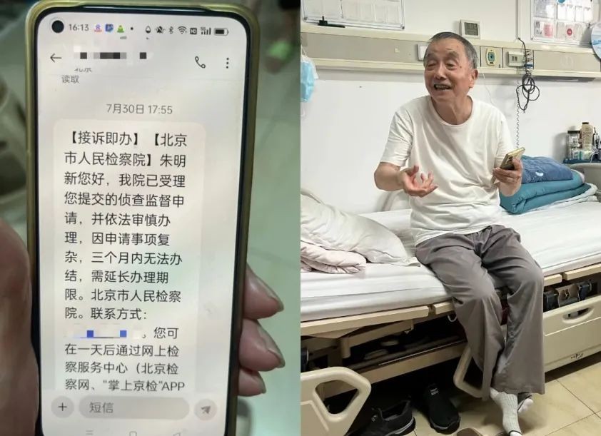 接电话的工作人员称,在导入监督程序之前,都是按照信访事项来审查诉求,看是否符合导入监督程序的条件,第十一检察部正在处理之中,并表示从四月底给朱阿姨发送收到材料的确认短信开始,到7月24日还没到三个月,请两位老人耐心等待。