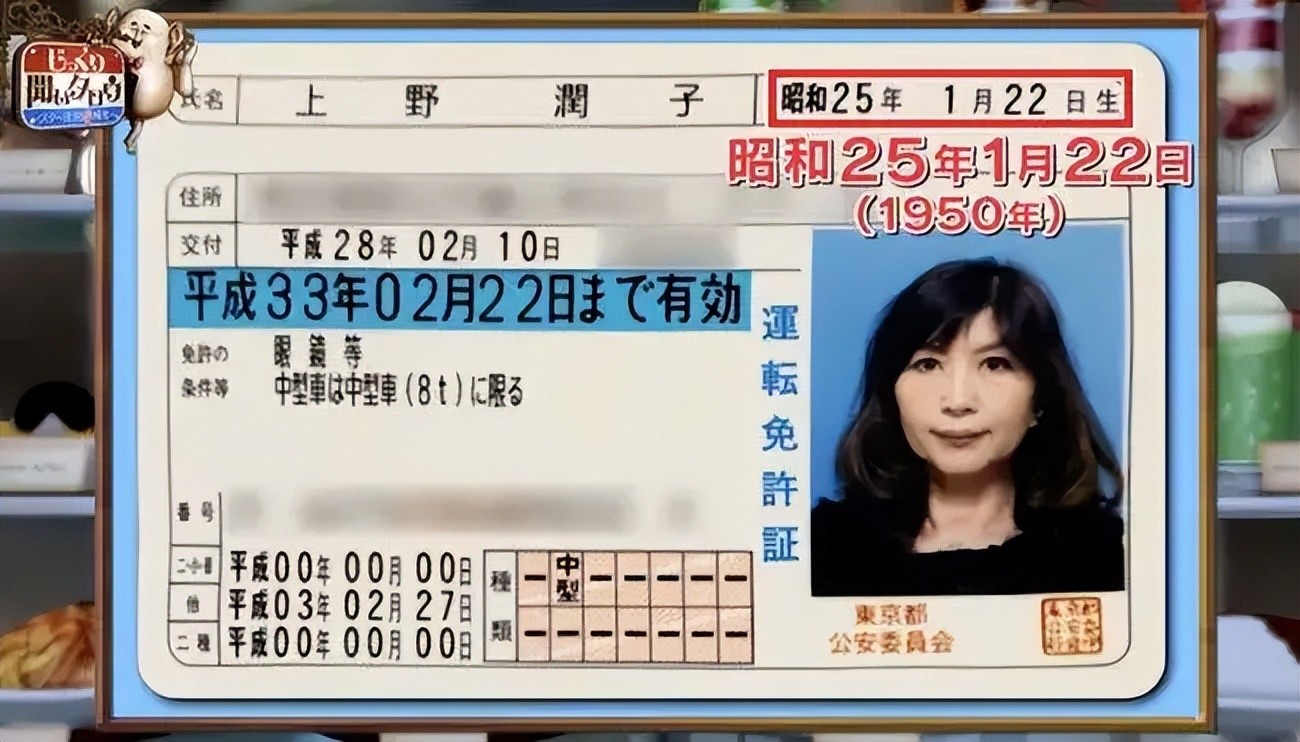 为了证实自己的年龄润子奶奶还拿出了自己的驾驶证,上面的出生日期确实写着昭和25 年,换算过来正是 1950 年。