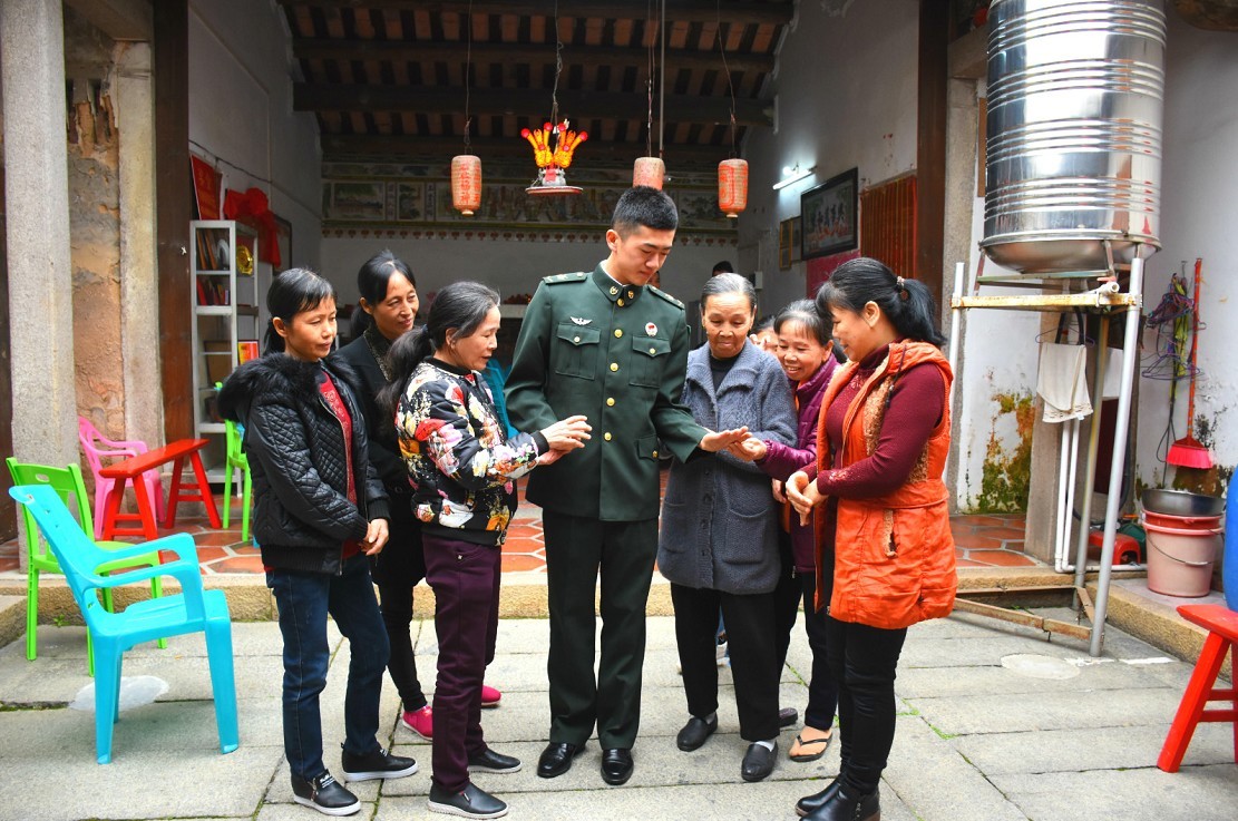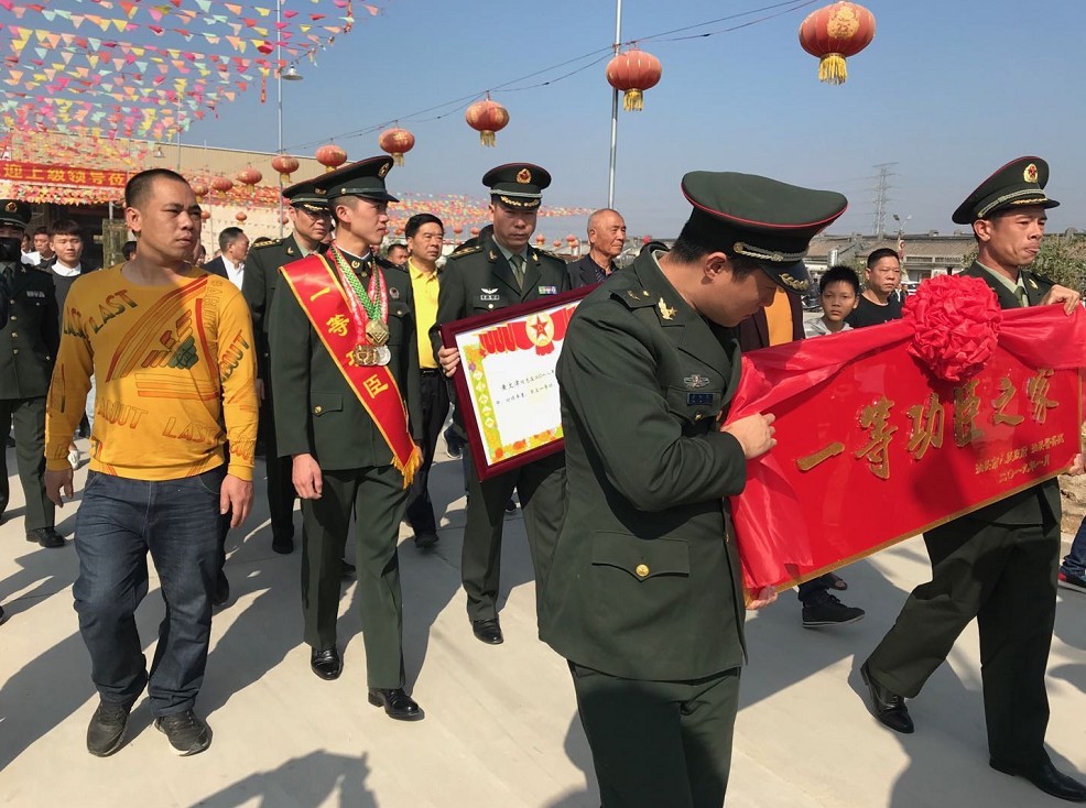 原来,1月31日黄文津回家当天,村民们一早就聚集到村内的文体广场,他们翘首以盼一位村里的“英雄”。这一天,汕头市委常委、汕头警备区政委梅浩还带队到凤壶村,向黄文津一家送喜报,并颁发“一等功臣之家”牌匾。