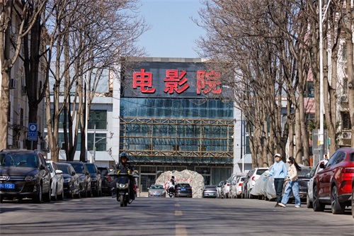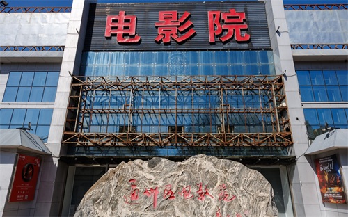 沿着吉祥路径直往北,能看到一栋三层白色小楼,顶部“电影院”三个红色大字格外打眼,影院大门紧锁。