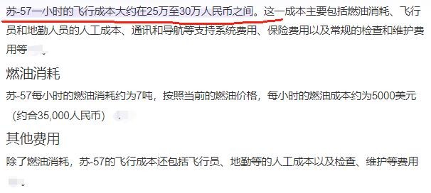 至于苏57的每小时飞行成本,一直有人说大约为30万人民币每小时,但并未有确切报道承认这一数字。