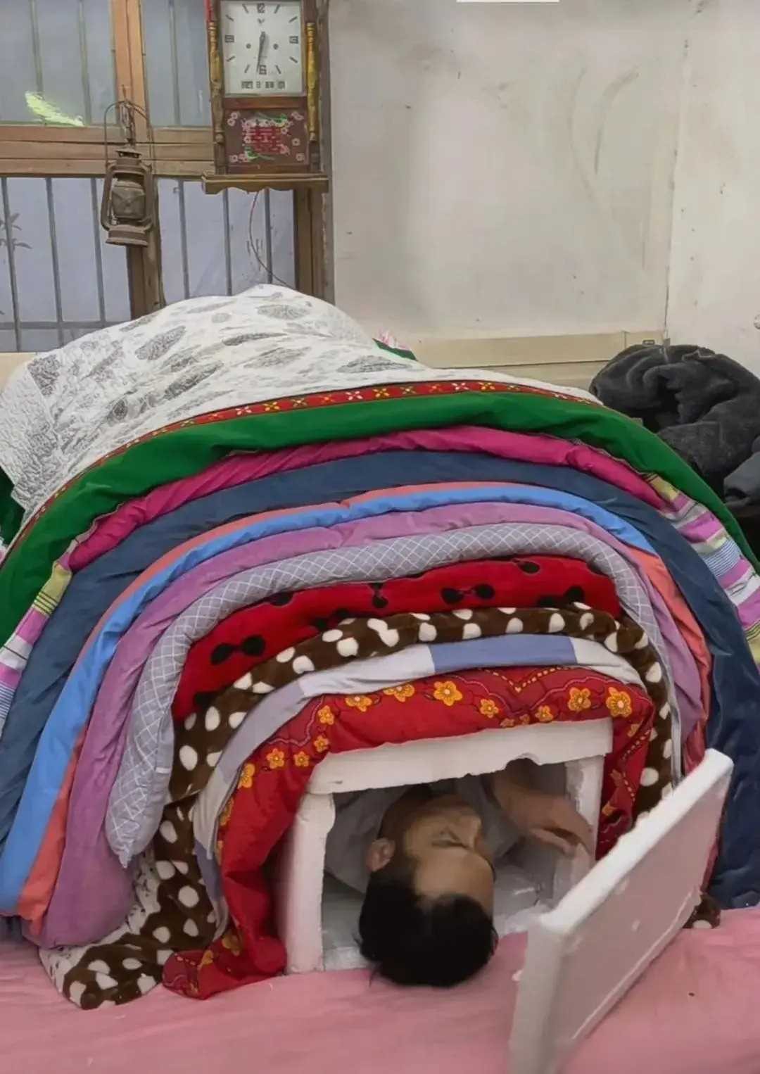 冬天怎么能不冷?蜂窝煤来解救,笑得合不拢嘴。
