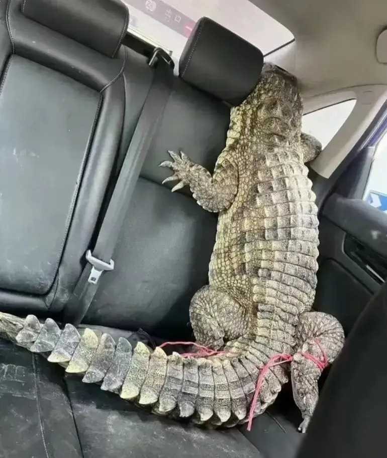 买了鳄鱼后被这样拖着跑,搞笑画面令人捧腹。