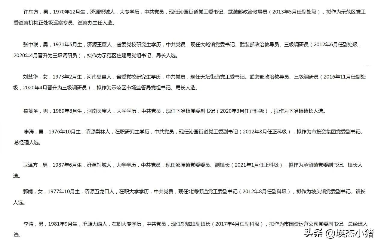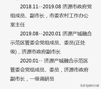 3、“济源市委副书记”同时担任“示范区党工委副书记”一职,为副厅级干部。