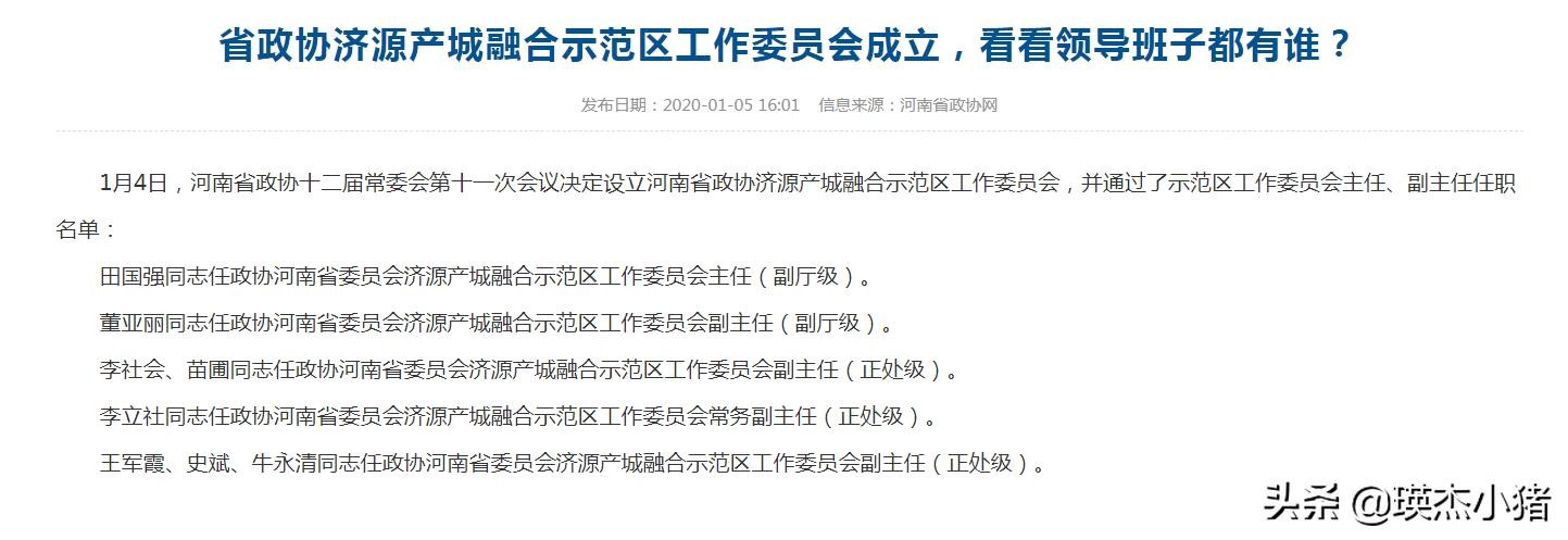 一、以济源市政协主席为例,其同时担任“济源示范区政协工委主任”一职,目前仅明确为副厅级。