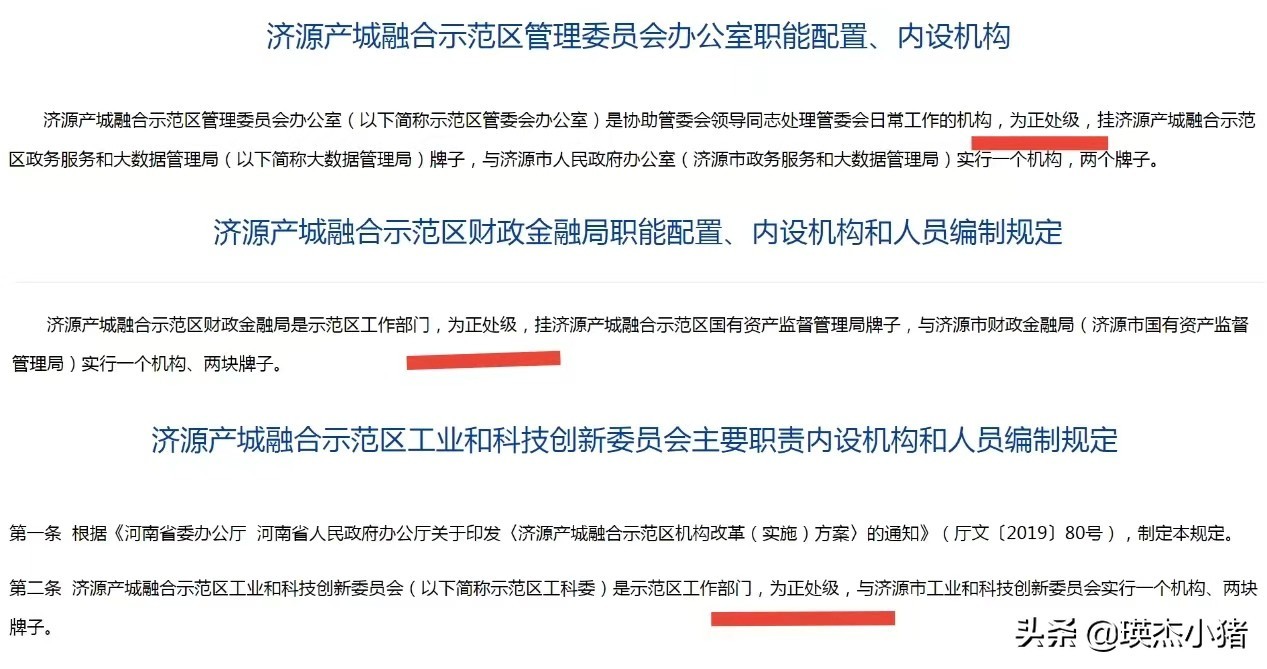 2、“济源市长”同时担任“示范区管委会主任”一职,为正厅级干部。