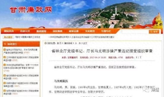 甘肃省林业厅党组书记、厅长马光明涉嫌严重违纪,贪污受贿等被判刑。