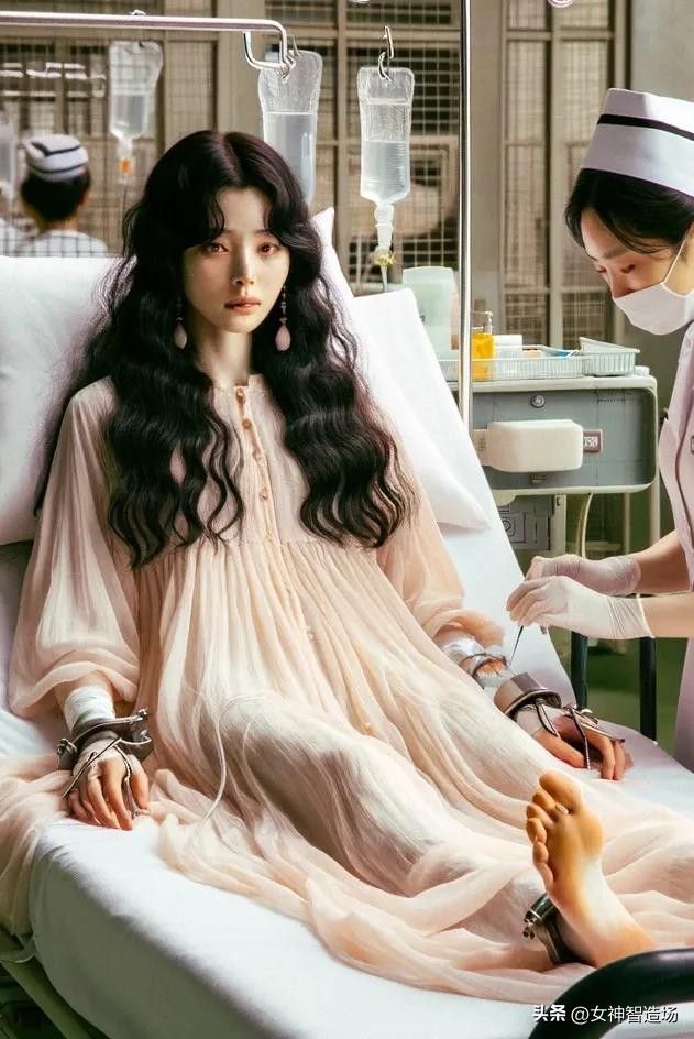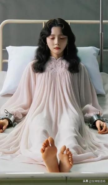 我和小璐继续换着床单,推车渐渐变得越来越重,装满了脏床单和被罩。走到第三张床边时,我看到一个女孩正低头注视着自己的手腕。她的手腕被锁在床栏上,细长的手指无力地垂着,整个人显得既安静又绝望。