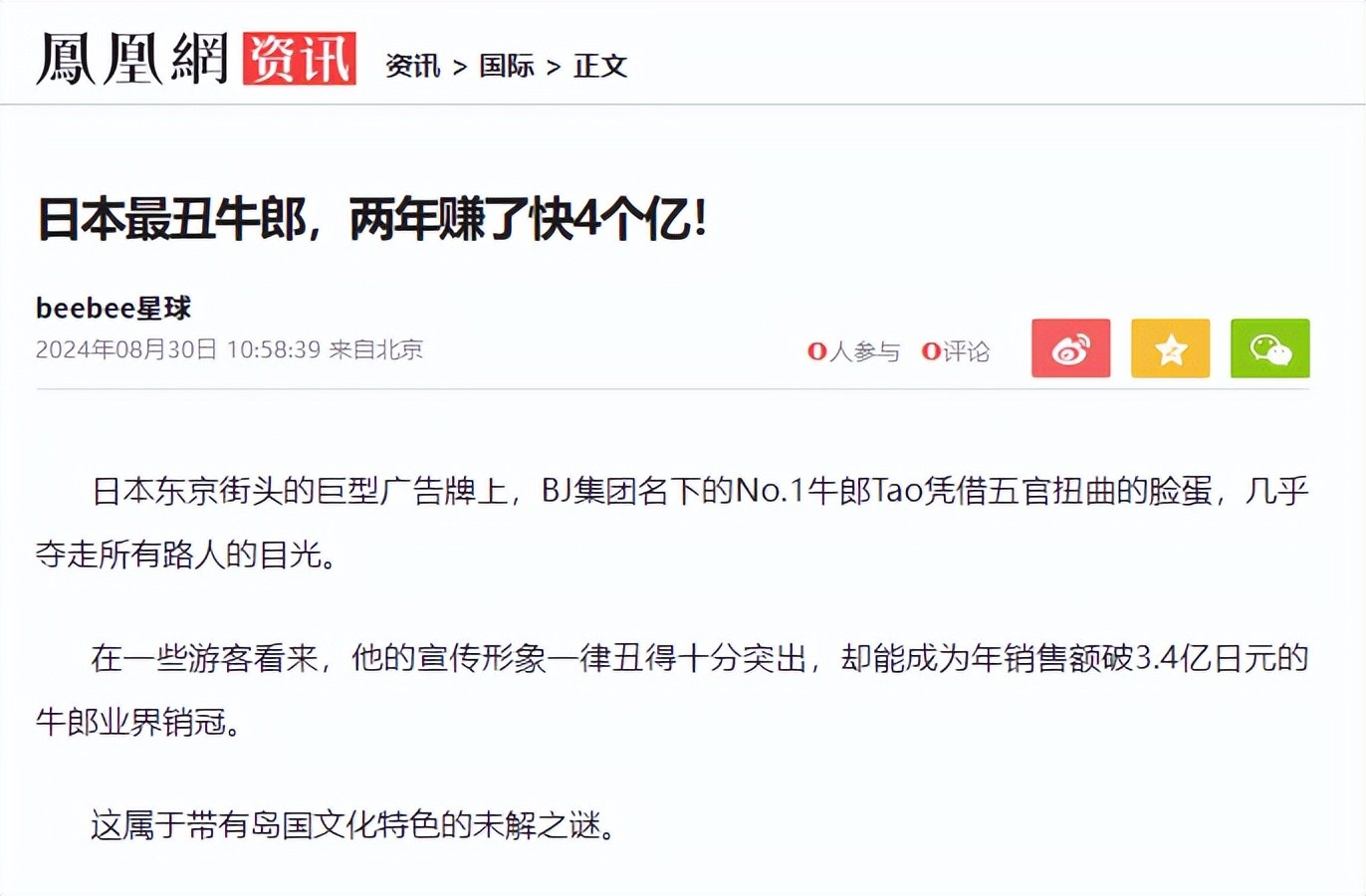 参考资料:日本最丑牛郎,两年赚了快4个亿!_凤凰网 (ifeng.com)