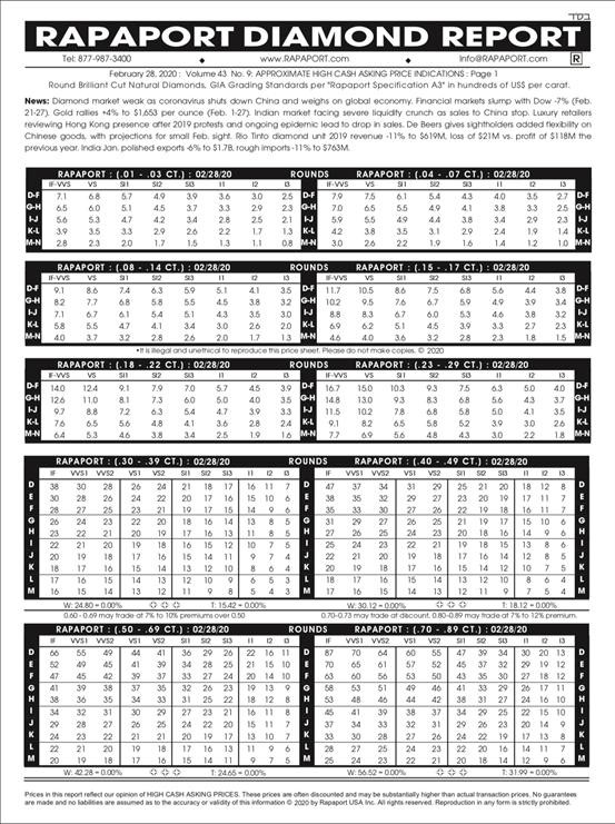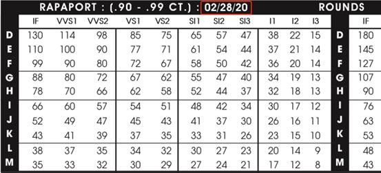 图1 (2020年2月28日最新国际钻石报价单 仅作参考)