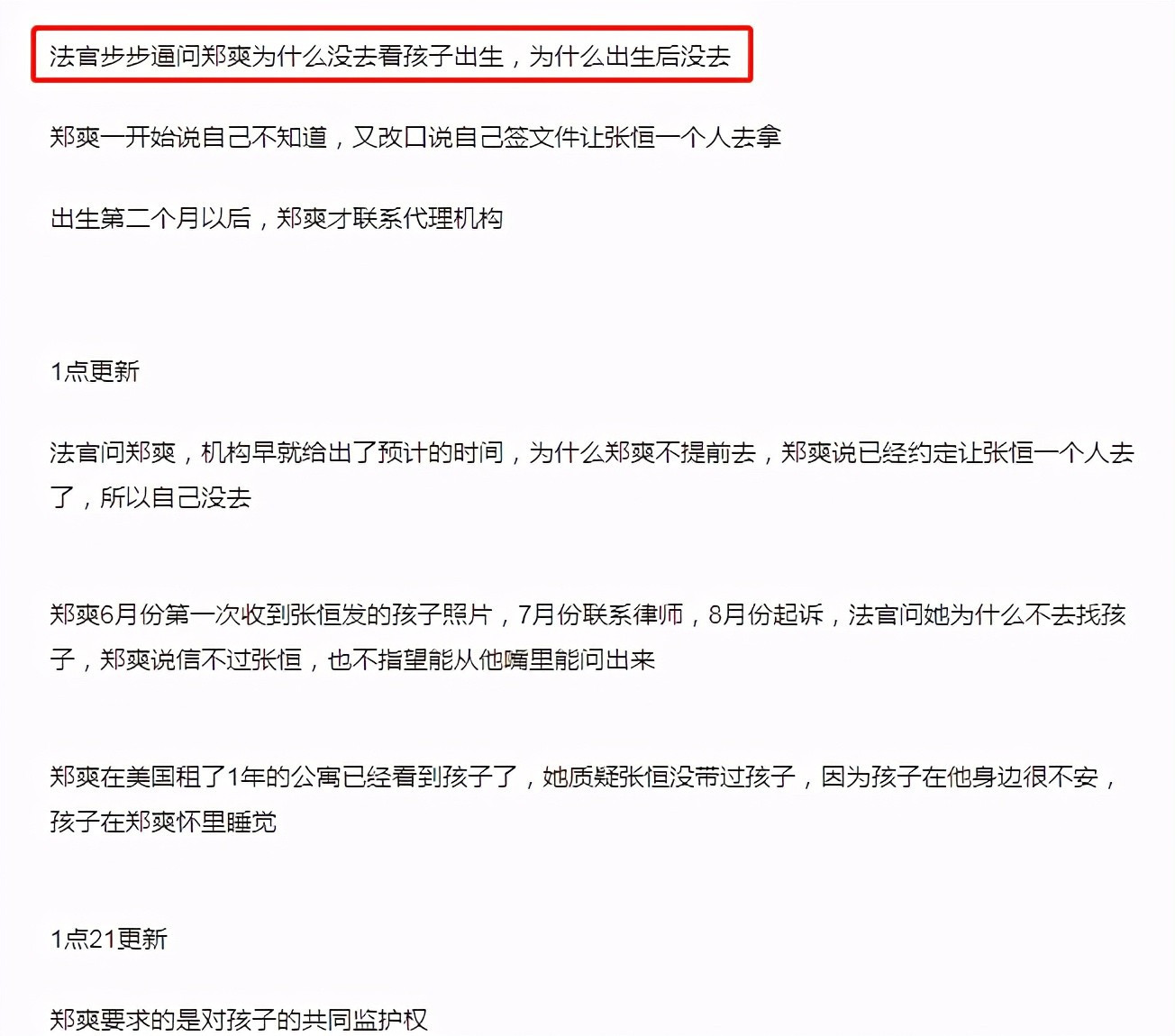 二、郑爽质疑张恒没有带过孩子,诉求是对孩子的共同监护权