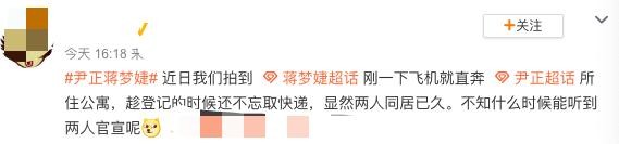 #尹正蒋梦婕同居#、#蒋梦婕恋情#、#同居#