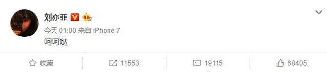 刘亦菲深夜发文“呵呵哒”