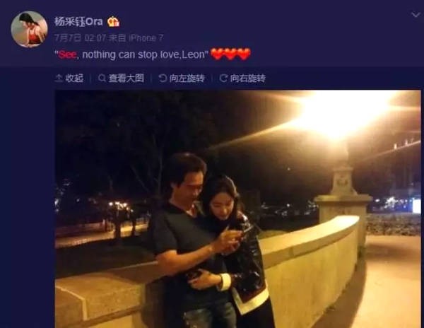 当时的杨采钰立刻就公布两人的恋情,第二天凌晨就在微博晒出与陈金飞的合照。