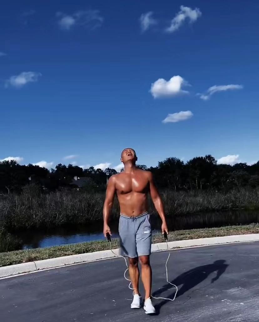 8月4日七夕节这天,乐嘉在社交平台晒出了在国外度假的画面,顶烈日跳绳,一身腱子肉黑到发亮,状态抢眼引发热议。
