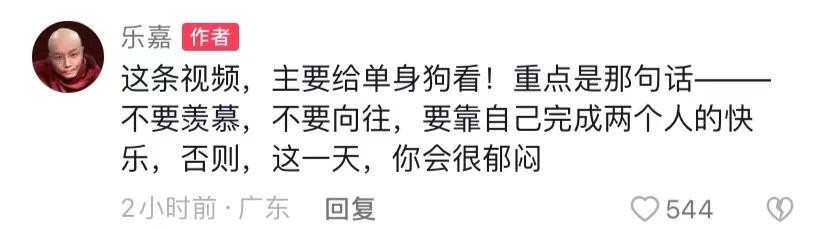 随后又在评论区补充表示“要靠自己完成两个人的快乐,否则这一天会很郁闷”。