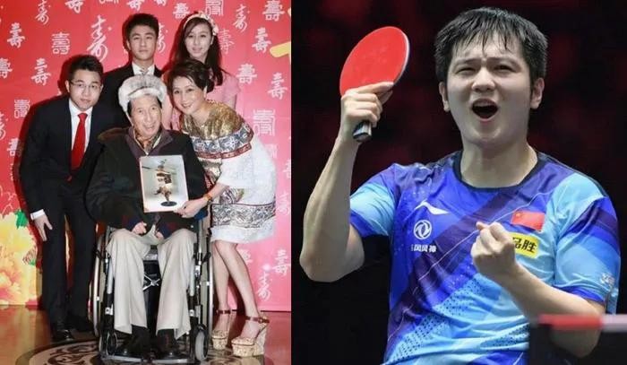 樊振东被赌王四太拉着合影
