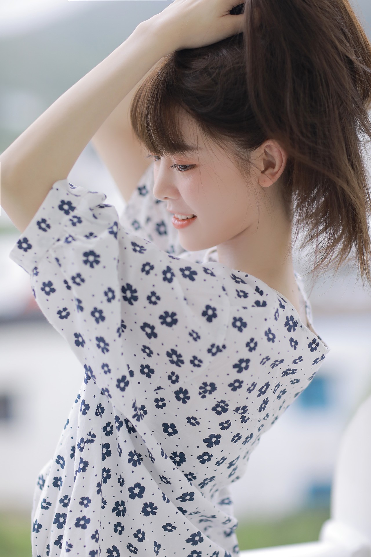 在户外的场景,风吹头发的时候,可以顺势做手撩头发的姿势,这个姿势能很好地展现女生的魅力,姿势也不会显得刻意。
