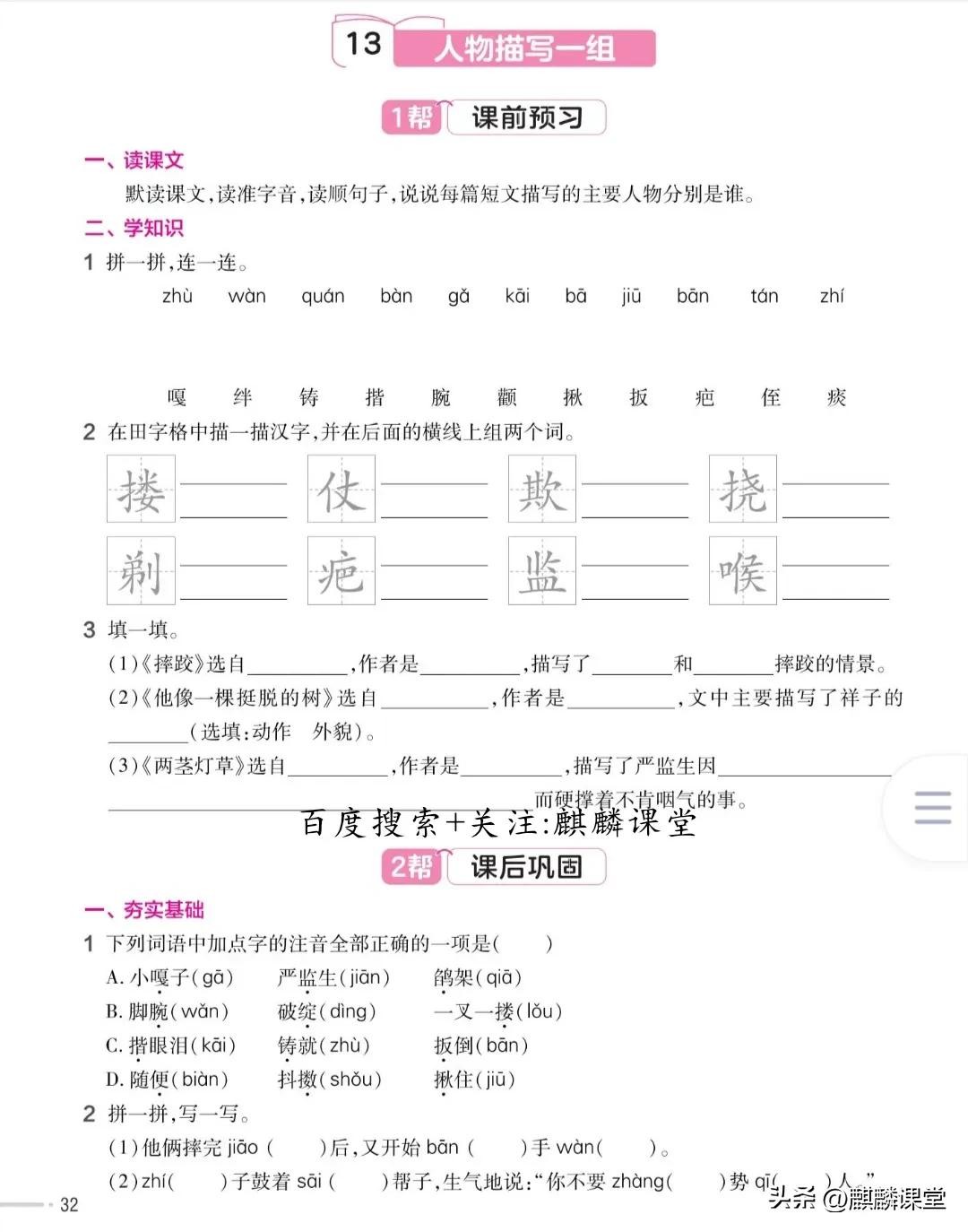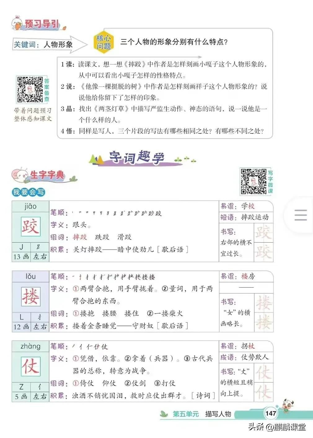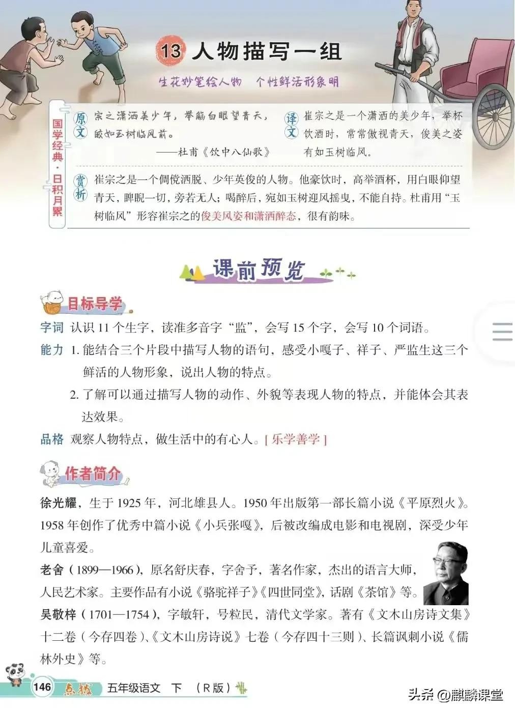 五年级语文下册十三课《人物描写一组》课文笔记和知识点汇总